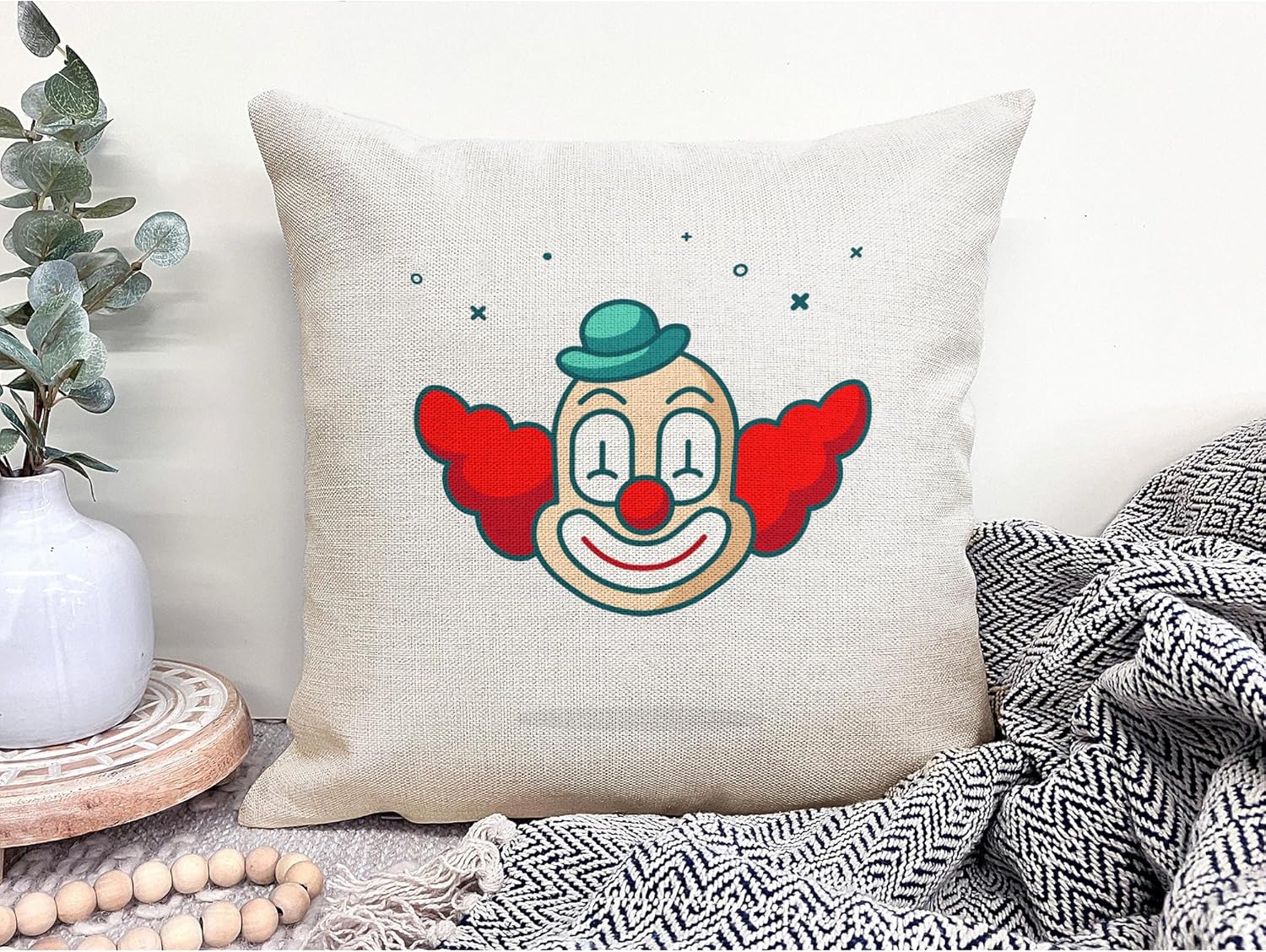 Add a playful pop to your space with this 16×16 inch clown-themed throw pillow cover.
