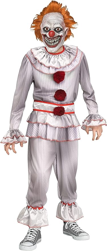 A spooky carnival-inspired killer clown costume for boys, perfect for Halloween and fright-filled fun.
