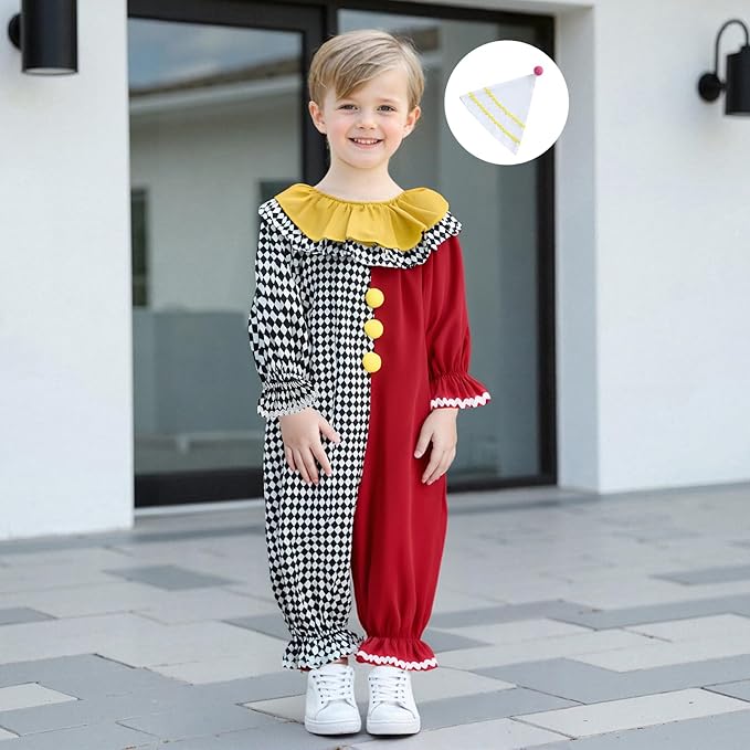 Dress your little one in festive fun with the Pudcoco Halloween Clown Costume!